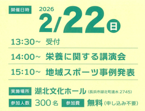 長浜市地域スポーツ推進事業「子どもたちの栄養に関する講演会・地域スポーツ事例発表」の開催について