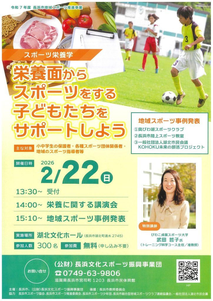 長浜市地域スポーツ推進事業「子どもたちの栄養に関する講演会・地域スポーツ事例発表」の開催について